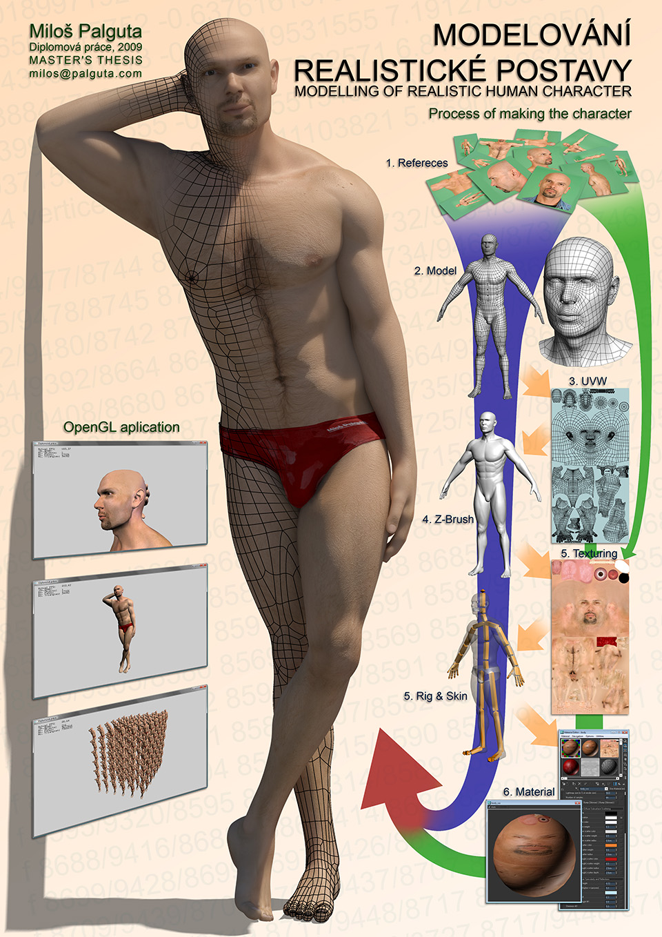 under thumbnails you can find my final poster i used as final work in master's degree thesis (scaled down, because original size was around 18Mpix big). next two images show some wip pictures with some details of body. last one is placed to some (really bad quality) photo i took during holidays in egypt. this scene is nothing to be proud of, but it was enough to show this character. it's basically only background, skylight and for shadows some noise plane. i even had to blur this render to fit it into photo, because of it's poor quality.